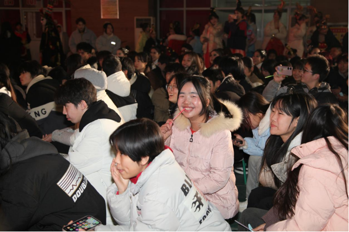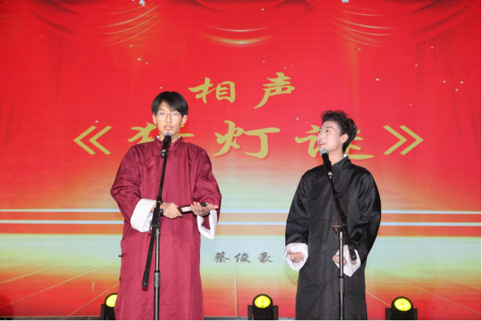 学生相声社团表演的对口相声《猜灯谜》诙谐幽默,引得现场观众捧腹大笑。