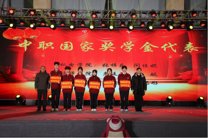 晚会现场,学院领导还对2022年度中职国家奖学金获得者、学院首届大学生职业规划大赛获奖学生、2023年学院优秀学生会干部进行了表彰奖励。