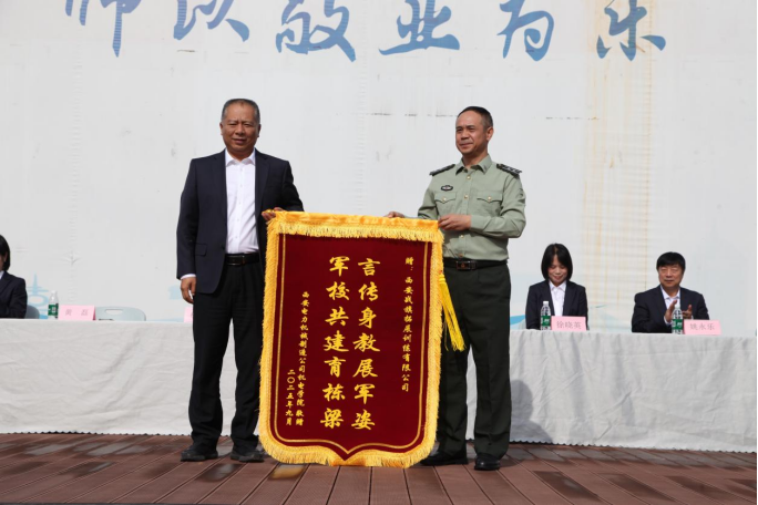 学院党委副书记、纪委书记程智平代表学院向承训部队赠送锦旗,表达诚挚谢意。